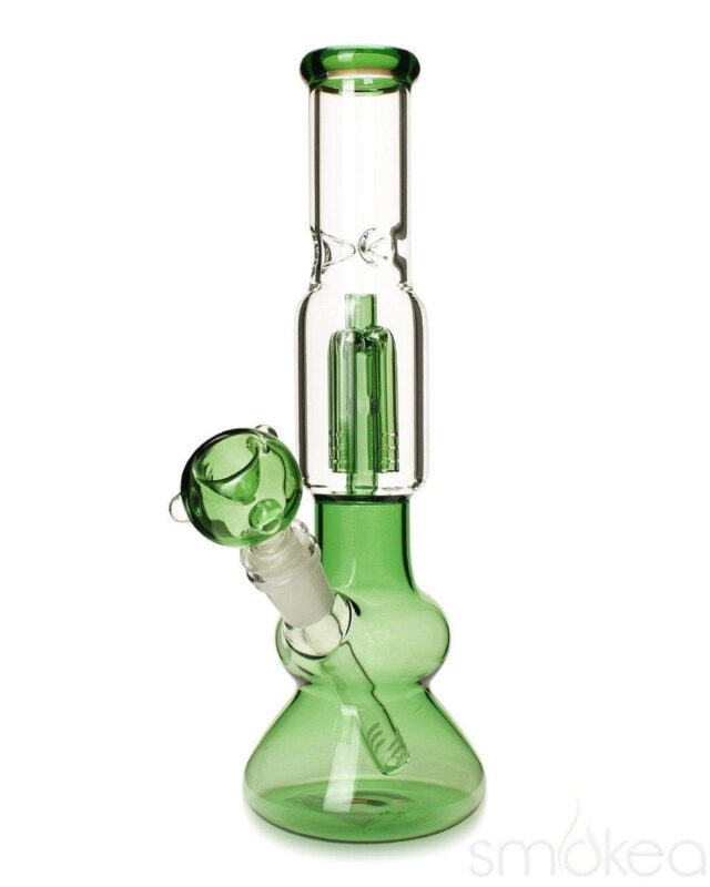 These bongs are made to percolate and built to last! The SMOKEA Single Tree Perc Bong features all the technology you need in one compact and affordable piece. This bong stands approximately 12″ tall and includes an ice catcher, four arm tree perk, a 14mm/18mm diffused downstem and a 14mm matching bowl. These are our most affordable water pipes featuring a percolator.