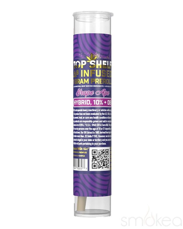 Top Shelf Delta 8 Infused Flower is perfect for those that rolled herb over vaping products. There’s plenty of options when it comes to vaping Delta 8 but this infused flower is pre-rolled and ready to smoke right out of the package – you’ll only need a lighter. Sourced from organically grown hemp and infused with hemp derived Delta 8 THC, this flower is made with the highest standards of ingredients, extracts, and ratios. Each pre roll is made with high quality rolling papers and include a built in tip.